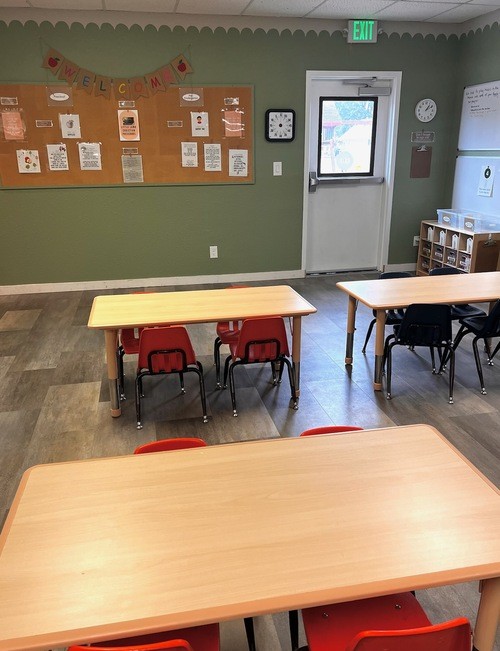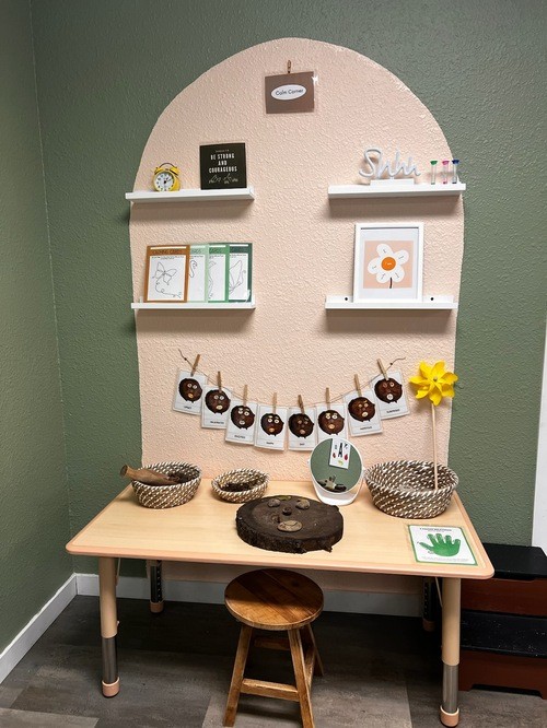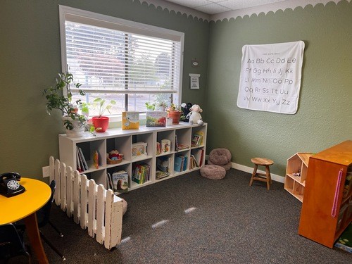 We have intentionally set up our classroom with calm colors and clear designated spaces to help facilitate all types of learning and strong communication with parents. We have spaces for center play, daily circle time, alphabet sensory bin, accessible books to read, and a calm corner to help teach children to regulate emotion.