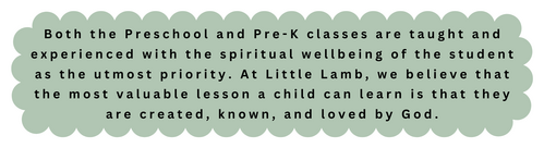 We invite you to join our Little Lamb family; where children can explore, learn and grow in a loving and supportive environment. Come and experience the joy of discovery and the power of faith at Little Lamb Christian Preschool.