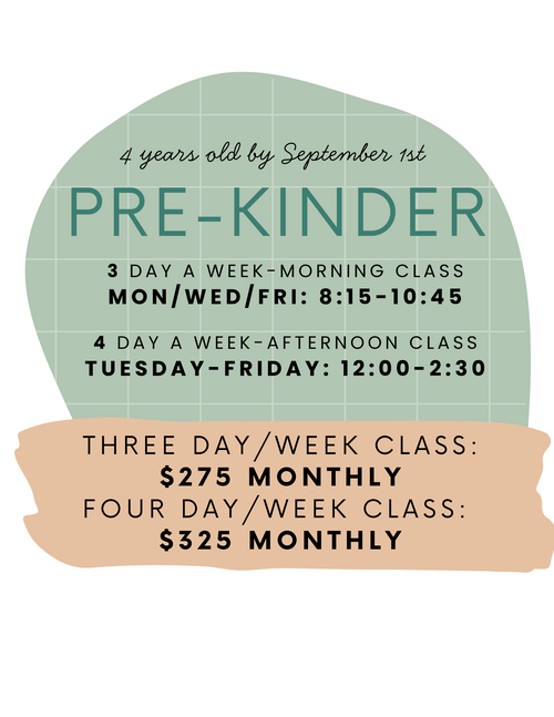 The Pre-K class builds upon the skills and lessons learned in Preschool and is designed to prepare the student to enter Kindergarten. This class adds two categories of Learning Goals: Responsibility and Independence.